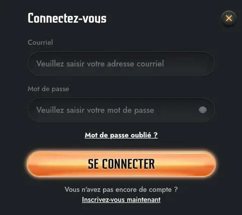 - Saisissez vos informations : Entrez votre adresse e-mail ou votre nom d’utilisateur enregistré ainsi que votre mot de passe.